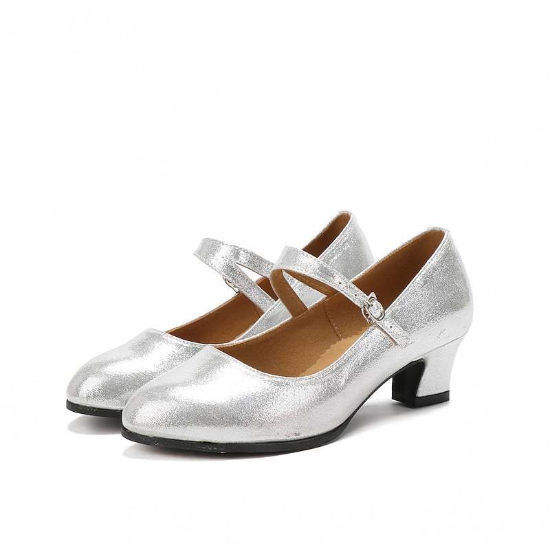 Highlights [Fabric] : Expertly crafted from high-quality faux leather, these Mary Jane dance shoes provide a polished and durable finish, ensuring long-lasting wear without compromising on style. The suede sole offers excellent traction for smooth, confident movements on the dance floor. [Silhouette] : Designed with a medium-low thick heel of 1 1/2 inches (approximately 4 cm), these shoes deliver both elegance and comfort, making them ideal for extended periods of wear. Their classic Mary Jane style exudes timeless charm, making them a versatile addition to any wardrobe. [Design Highlights] : Featuring an adjustable buckle strap, these shoes ensure a secure and personalized fit. The vintage-inspired Mary Jane design adds a touch of sophisticated, retro flair, perfect for dancers looking to make a stylish statement. [Occasions] : Perfect for ballroom and Latin dance, these shoes are crafted with indoor usage in mind. Ideal for professional dance settings including waltz sessions and dance rehearsals, they marry function with fashion seamlessly. [Size Information] : Available in a wide range of sizes from US4-4.5 / EU34 / UK2-2.5 to US10.5 / EU42 / UK8.5, these shoes cater to a variety of foot sizes. For those with wider feet, considering a size up is recommended to ensure the best fit and comfort.