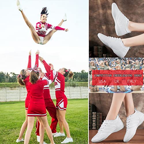 DADAWEN Cheer Shoes for Youth Girls Women White Cheerleading Dancing Shoes Athletic Training Tennis Walking Breathable Competition Cheer Sneakers 5