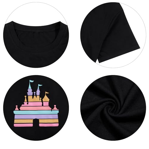 Fabric type: Cotton BlendCare instructions: Machine WashOrigin: ImportedClosure type: Pull OnComfortable fabric: Crafted from high-quality and comfortable fabric, these tees ensure a pleasant wearing experience. The casual short sleeves make them ideal for everyday wear, whether you're exploring the theme park or enjoying a family holiday.Happy holiday graphics: The happy holiday shirts aspect adds an extra layer of cheerfulness to the tees. Expressive graphics convey a sense of joy and celebration, making them a great choice for spreading holiday spirit and happiness.Magical holiday shirt: The women's magical graphic tees feature enchanting designs that bring the magic of the magic kingdom to life. With a holiday twist, these shirts add a festive and joyful vibe to your wardrobe, making them perfect for celebrating special occasions.Great gift: Whether it's for a fairy tale-loving friend or a family member, these funny castle shirts make for a delightful and one-of-a-kind gift. The combination of magic kingdom graphics, holiday theme, and comfortable design ensures that they are not only fashionable but also a thoughtful present for the holiday season.Purchasing Tips: Please check the size chart carefully before purchasing and choose the appropriate size according to your needs. Perfect for everyday use. superior materials and excellent craftsmanship ensure long-lasting durability.