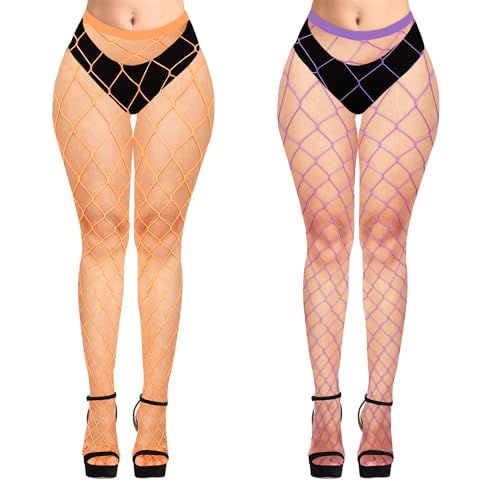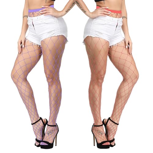 Violet Mist Womens Fishnets Colorful Fishnet Tights High Waist Mesh Fishnet Stockings 2 Pack, XL Hole