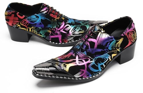 Santimon Mens Pointed Toe Lace Up Dress Shoes with Metal Tip – Western Formal Oxfords with Colorful Pattern, Snake Print & Graffiti Design – Stylish Party Stage Prom Shoes 6