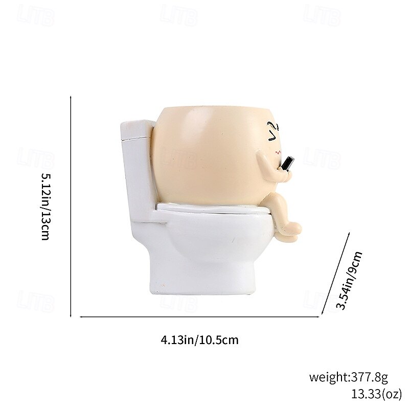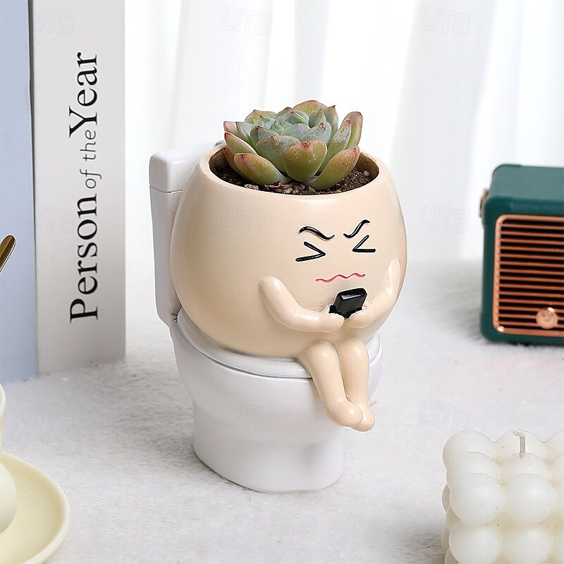 HOT ! Funny Toilet Sitting Succulent Planter, Creative Cute Green Plant Figurine, Fun Office Desk or Study Room Decoration, Stress Relief Succulent Pot for Home Decor