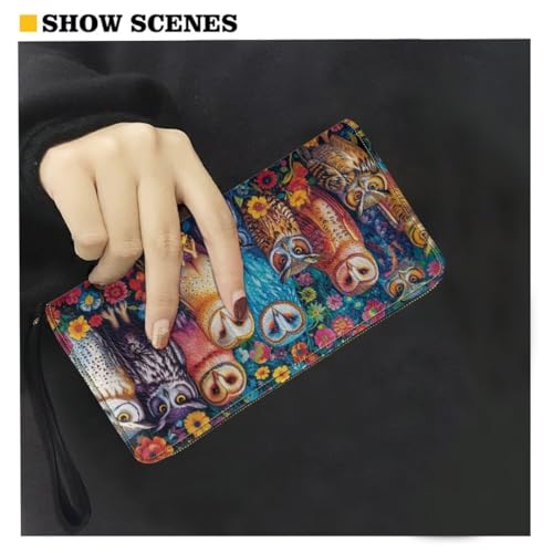 More information about Womens Flower Owl Wallet PU Leather Zip Around Wallet Large Capacity Long Purse Credit Card Clutch Wristlet
