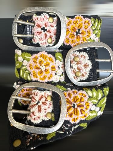 HOT ! Peruvian Embroidered Belt for Women, Wool, Handmade, Fair Trade - Vintage Blossom Black Base