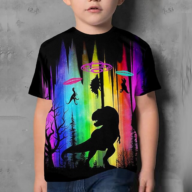 HOT ! Kids Boys T shirt Tee Animal Dinosaur Short Sleeve Crewneck Children Top Casual 3D Print Cool Daily Summer Purple 3-12 Years