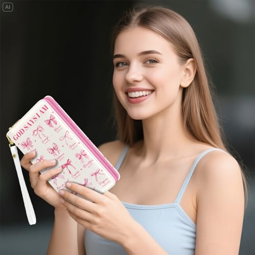Inspirational Womens Wallet, Pink Bow Christian God Wristlet Wallet For Women, God Says I Am Credit Card Holder Purse, Birthday Christmas Graduation Gifts For Women Mom, Travel Office Daily Purse 2