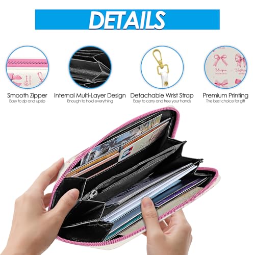 • Large Capacity: Measuring 7.48 x 3.94 x 0.98 inches, the pink wallet includes 8 card slots, 1 zippered coin pocket, 2 bill compartments for cash and receipts, and 2 large accessory slots—keeping everything neatly organized. This inspirational wallet would make a great birthday, anniversary gift for women