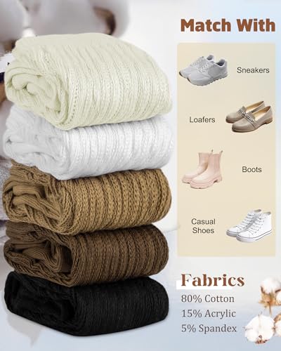 Fabric type: 80%Cotton, 15%Acrylic, 5%SpandexOrigin: ImportedWeave type: KnitFit type: RegularMaterial: Slouch socks are made of premium fabric with high elasticity for plush, non-binding fit and double-thick sole with reinforced heel and toe; The elastic band at the scrunch socks cuff ensures a snug fit for all-day wear and comfortSize: Thigh high fall socks have good elasticity for women girls with US shoe size 5-12; Machine washable and hand washable; We recommend hand washing to extend the life of your casual cotton socks; Avoid ironing or dry cleaningMatch: Slouchy socks for women are perfect for casual, sporty, dancing and more; Tube crew socks are available in a variety of colors to match any outfit; scrunch boot socks go well with sneakers, flats, loafers and more for all seasonsDesign: Soft long socks have right thickness and wrinkles design; You can pull knit socks up to your knees, halfway up your calves, and up to your ankles; Different lengths can be matched with different dressing stylesChoice: Scrunch socks women as a fashion item are warm and practical, Long fall socks can be worn both indoors and outdoors, and can be given to friends, mothers, lovers, etc; to express love on birthdays, Christmas, Valentine's Day and other festivals Perfect for everyday use. excellent materials and excellent craftsmanship ensure long-lasting durability.