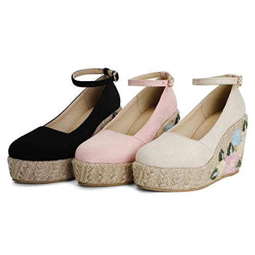 VOKLIN Women's Espadrilles Wedge Dress Pumps Suede Round Toe Ankle Strap Casual Platform High Heel Pump Shoes 5