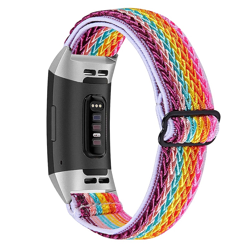 Highlights - Compatible with Fitbit Charge 3 / Charge 3 SE / Charge 4 Charge 2 smart watches. - Made of elastic and breathable nylon with innovative wave texture. - Washable, soft and comfortable feeling for all-day wear. - One size fits most with adjustable stainless steel slider, length adjustable from 4.5-9.5 inches. - Super elastic design for ultimate comfort and cute style. - Perfect for daily exercise and workouts, keeping the watch securely against your wrist for accurate readings. - Breathable and easy to wash, not irritating to your skin even during hot and sweaty activities. - Upgrade your Fitbit with this stylish and functional elastic nylon watch band!