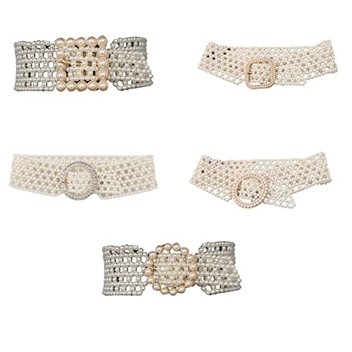 Women Beaded Waist Belt Stretchy Belt Wide Pearl Elastic Sashes For Rhinestone Dress Belts Trendy Waist Decoration 5