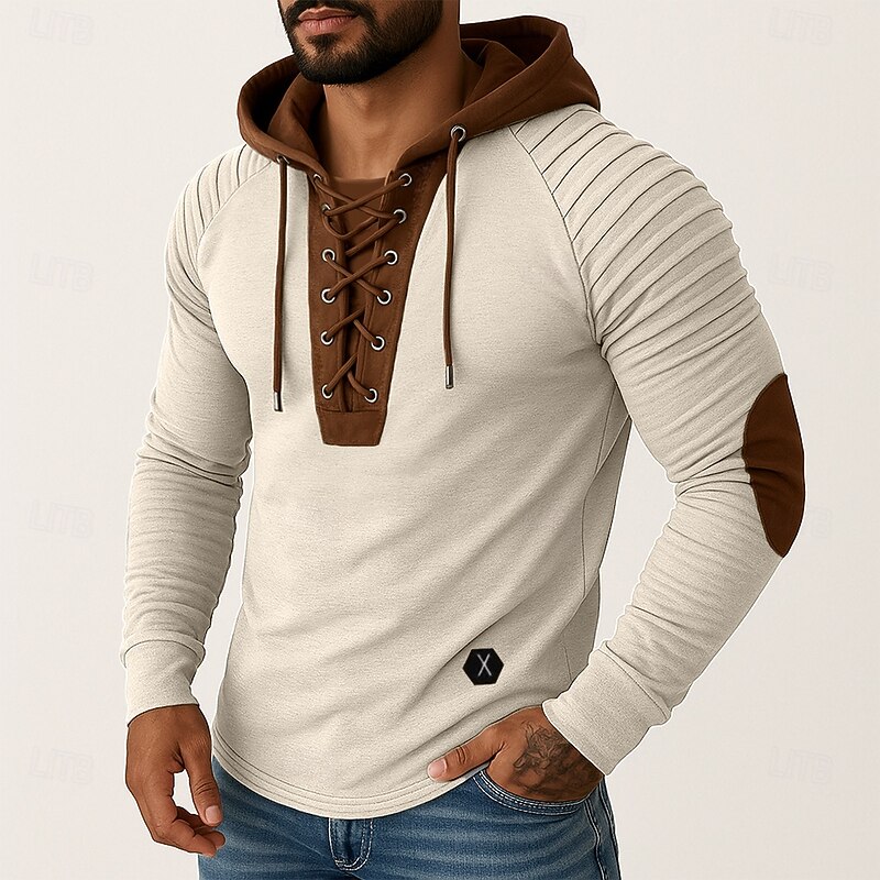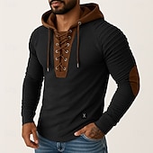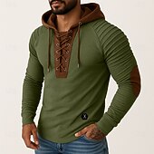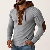 More information about Men's T Shirt Tee Top Long Sleeve Shirt Long Sleeve Hooded Spring & Fall All Seasons Color Block Slim Pleated Designer Vintage Style Casual Lace up Patchwork Vintage Style Vacation Street Casual