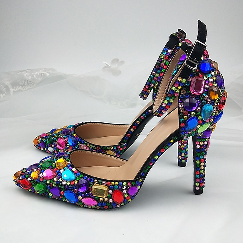 Women's Multicolor Rhinestone Wedding High Heel Shoes with Matching Clutch Bag 1