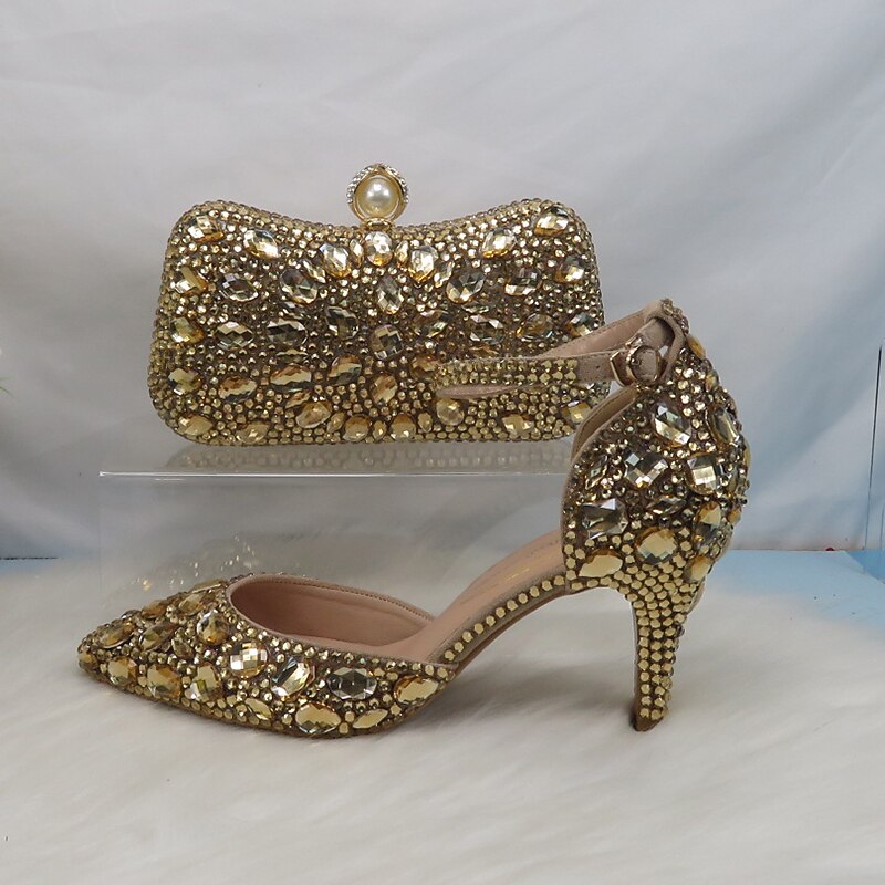 More information about Women's Multicolor Rhinestone Wedding High Heel Shoes with Matching Clutch Bag