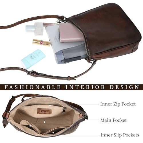 Iswee Leather Crossbody Bag for Women Purses and Handbags Adjustable Shoulder Purse Pocketbooks Travel Hobo Work Tote Daily