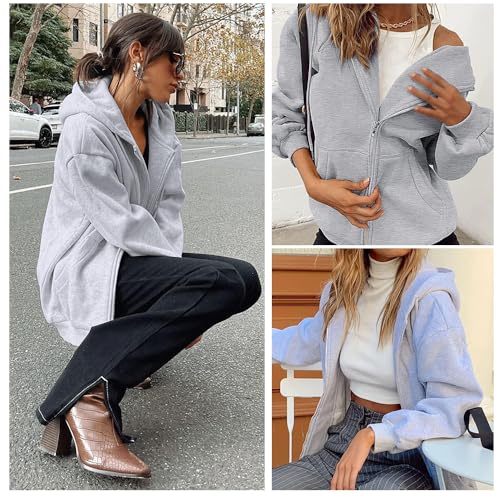Women's Oversized Zip-Up Hoodie - Lightweight Casual Jacket, Fall Winter Wear 2