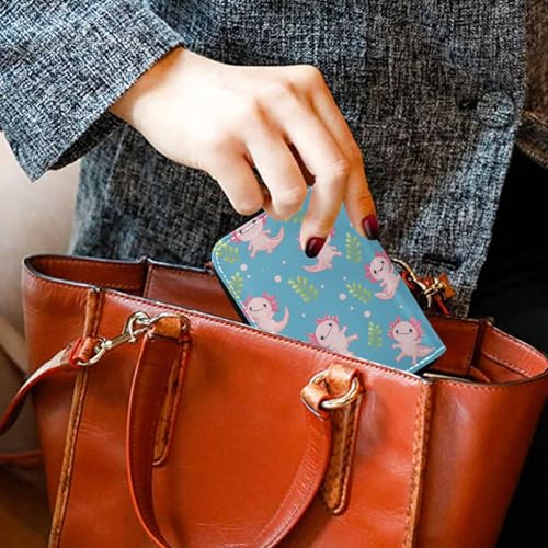 RFID Credit Card Holder Cute Axolotls Leather With Zipper Card Case Wallet for Women Girls 3