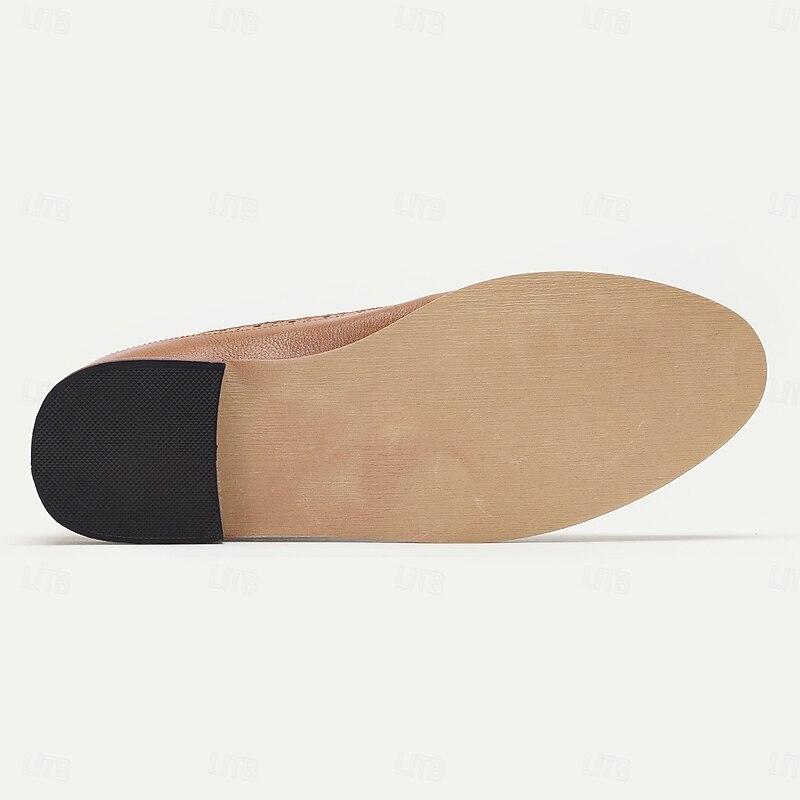 Men's Tan Faux Leather Brogue Oxfords with Blue Nylon Woven Insets - Business Casual Wear 6