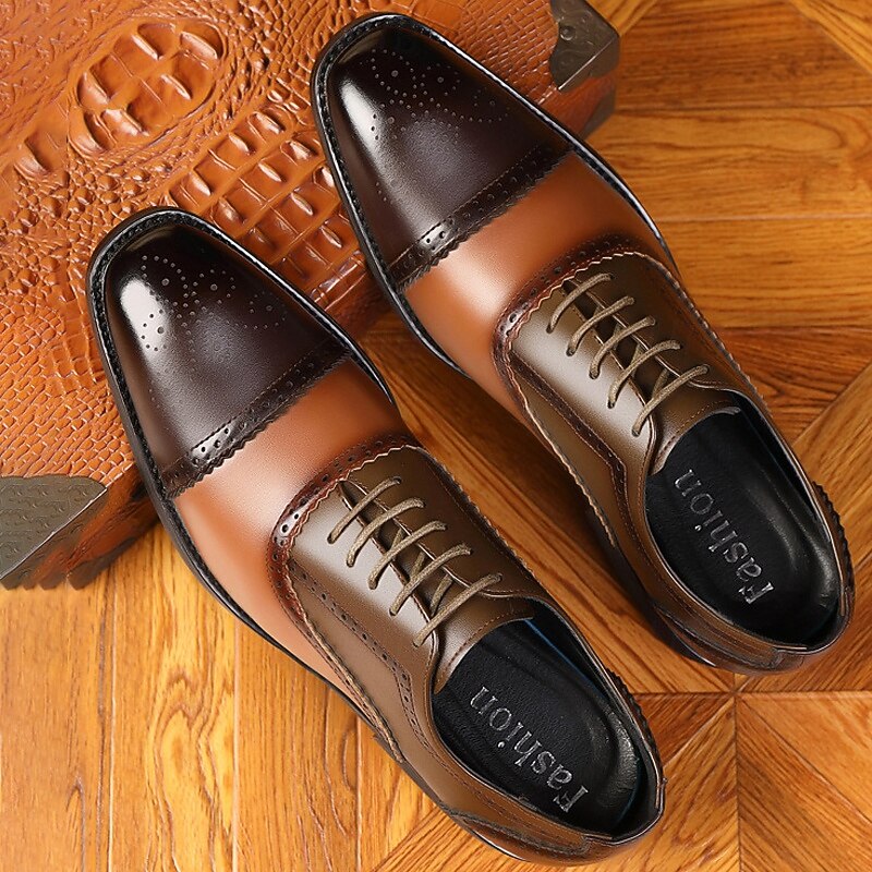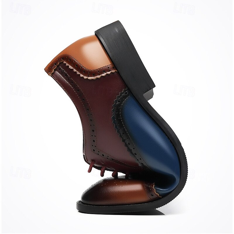 Highlights [Fabric] : Crafted from premium PU leather, these brogue shoes are designed to mimic the look and feel of genuine leather, delivering a durable and refined finish. The use of quality materials ensures comfort and longevity with every wear. [Fit] : These men's Oxfords feature a classic round toe design and a lace-up closure, providing a snug and secure fit. The rubber outsole enhances slip resistance, ensuring stability and ease of movement for everyday wear. [Design Highlights] : The standout tri-color scheme, combining rich shades of brown, blue, and tan, adds a present-day twist to this timeless silhouette. Decorative perforations along the seams and fine stitching details around the eyelets and edges emphasize craftsmanship and elegance. [Occasions] : Perfectly suited for formal events, business meetings, and smart-casual outings, these shoes effortlessly complement a variety of dress codes. Whether it's an office day or a sophisticated evening function, they add a touch of class to any ensemble. [Size Guide] : Available in a range of sizes to accommodate different preferences, these shoes are offered in sizes US6 to US10.5, ensuring that you find the perfect fit for optimal comfort and style. Perfect for everyday use. superior materials and excellent craftsmanship ensure long-lasting durability.