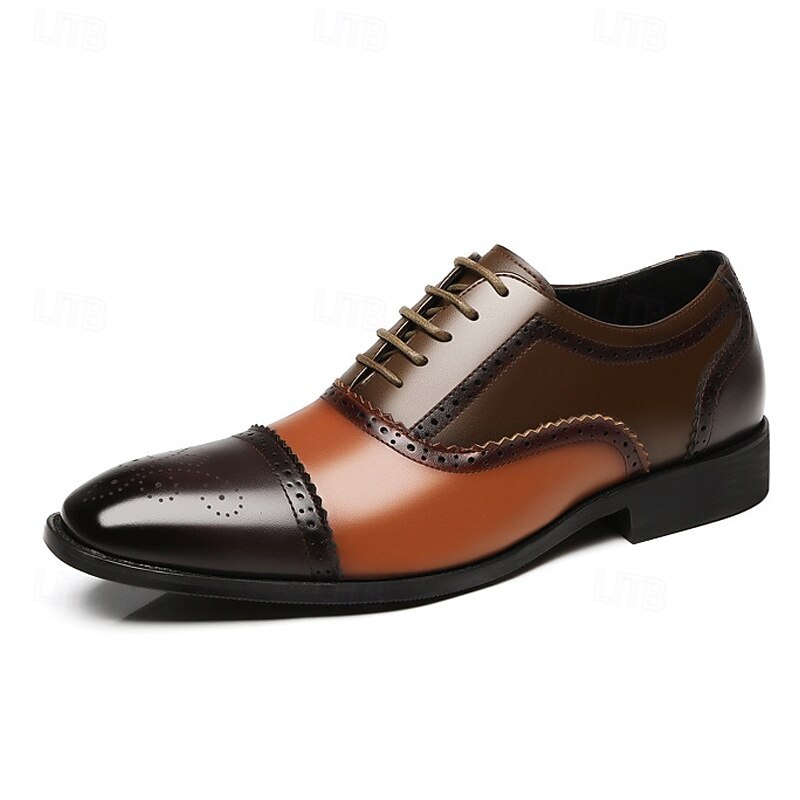 Men's Multicolor Wingtip Oxford Brogue Shoes – Faux Leather Lace-Up Dress Shoes for Formal and Business Occasions