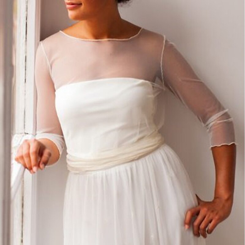 Women's Wrap Bolero Voiles & Sheers Bridal Sun Protection Long Sleeve Tulle Wedding Wraps With Pure Color For Wedding All Seasons dress to impress 3