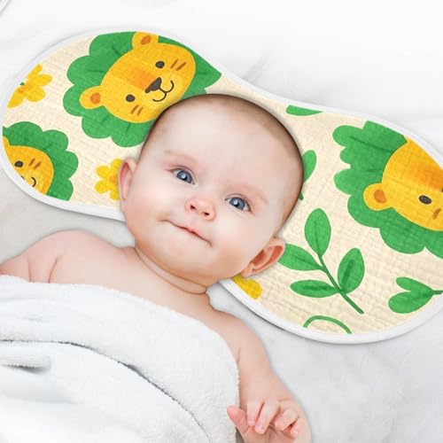 4 Pack Baby Burp Cloths, Soft Absorbent Burping Cloths for Babies, Cotton Milk Spit Up Rags, Large Size for Newborns, Baby Boys and Girls (Cartoon Green Lions) 5