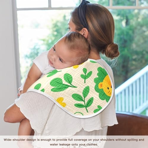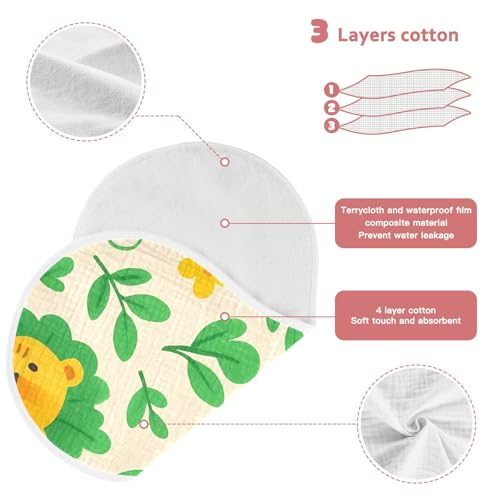 4 Pack Baby Burp Cloths, Soft Absorbent Burping Cloths for Babies, Cotton Milk Spit Up Rags, Large Size for Newborns, Baby Boys and Girls (Cartoon Green Lions) 7