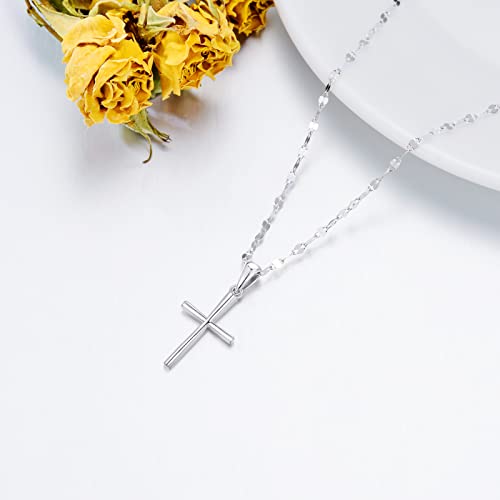 SISGEM 14k White Gold Cross Pendant and Lip Chain Necklace for Women, Baptism Jewelry Confirmation Gifts for Her, 18 inch 2