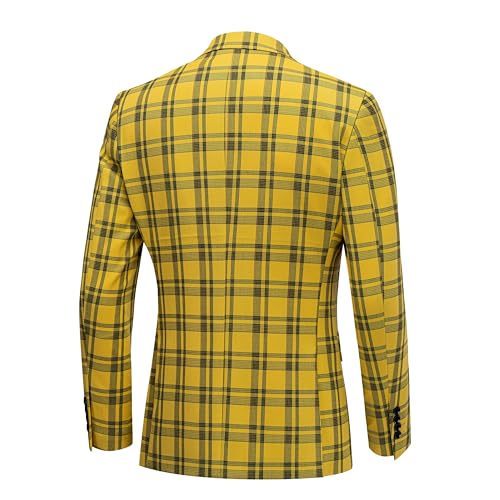 Mens Blazer Plaid Sport Coats One Button Casual Slim Fit Checked Jacket US Size 36 Yellow 3