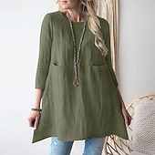 More information about Women's Cotton Linen Shirts Plain Daily Stylish Basic 3/4 Length Sleeve Crew Neck Regular Tops Work Daily Holiday Pocket Black Army Green Khaki Spring Fall
