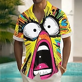 Why Choose Men's Cartoon Funny Big Eyes Shirt Summer Shirt Button Up Shirt Short Sleeve Fashion Casual Vacation Holiday Streetwear Summer Turndown 3D Print Front One Pocket Linen enjoy Shirt Yellow?