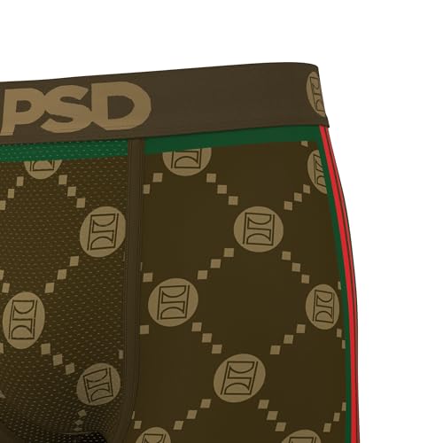PSD Mens Boxer Briefs - Emblem Lux Brown, 7 Inch Inseam, Moisture-Wicking, 4-Way Stretch, Boxer Briefs for Men Pack