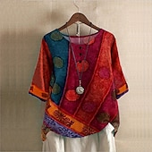 More information about Women's Plus Size Linen Shirt Boho T-shirt T Shirt Streetwear Casual Color Block Striped Print Half Sleeve Regular Tops Crew Neck Daily Sports Weekend Red Blue Purple Summer Spring