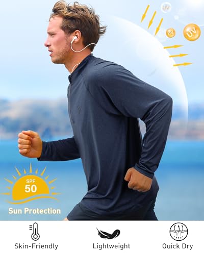 Roadbox Quarter Zip Pullover Men Sun Shirts, Running Workout Long Sleeve UV Shirt, UPF 50+ rapid Dry Athletic Rash Guard
