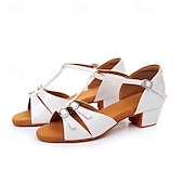 More information about Women's Latin Dance Shoes Performance Training Practice Satin Basic Sandal Buckle Thick Heel T-Strap Ankle Strap Silver Dark Brown Black