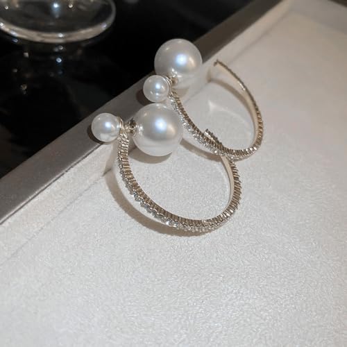 HOT ! Large Pearl Rhinestone Hoop Earrings for Women, Chunky Sparkly Crystal Statement Hoop Earrings Trendy Cubic Zirconia Prom Party Jewelry Gifts