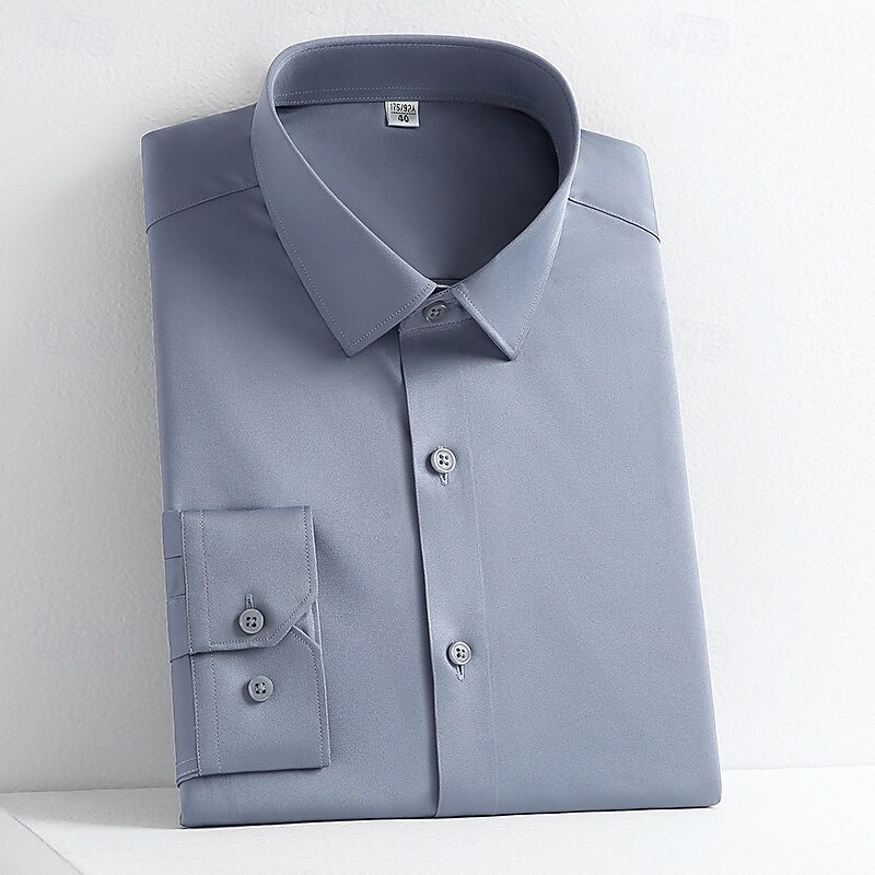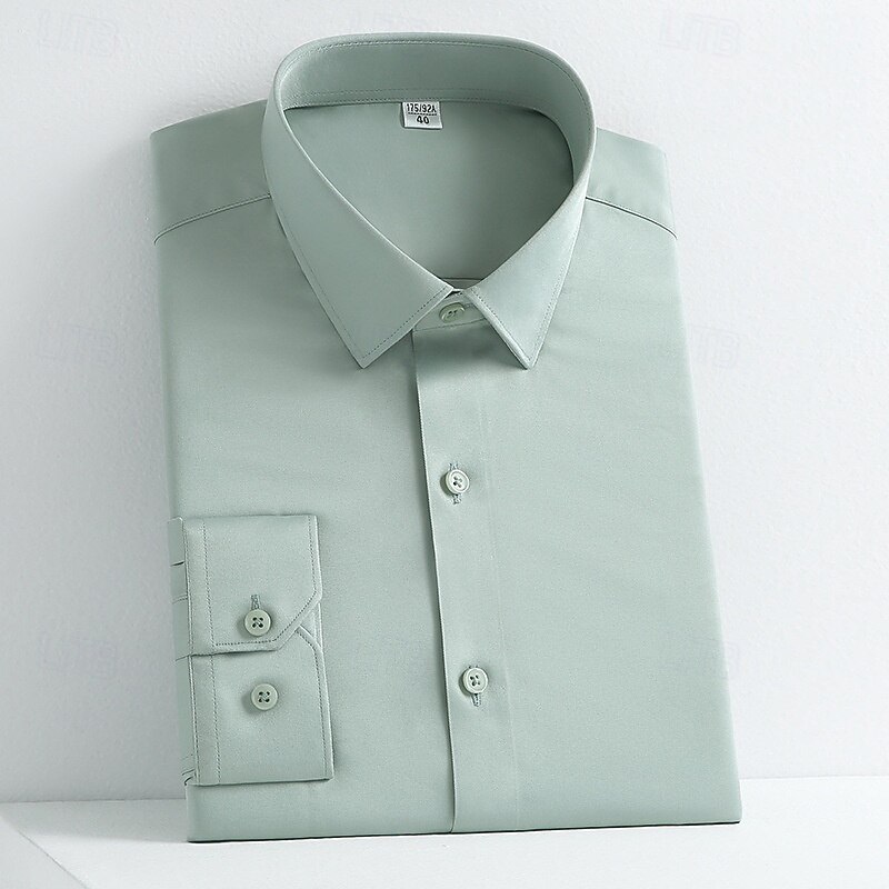 Men's Shirt Dress Shirt Button Up Shirt Solid Color Wedding Party Black White Yellow Light Green Long Sleeve Lapel Spring Fall Clothing Apparel Pocket 25