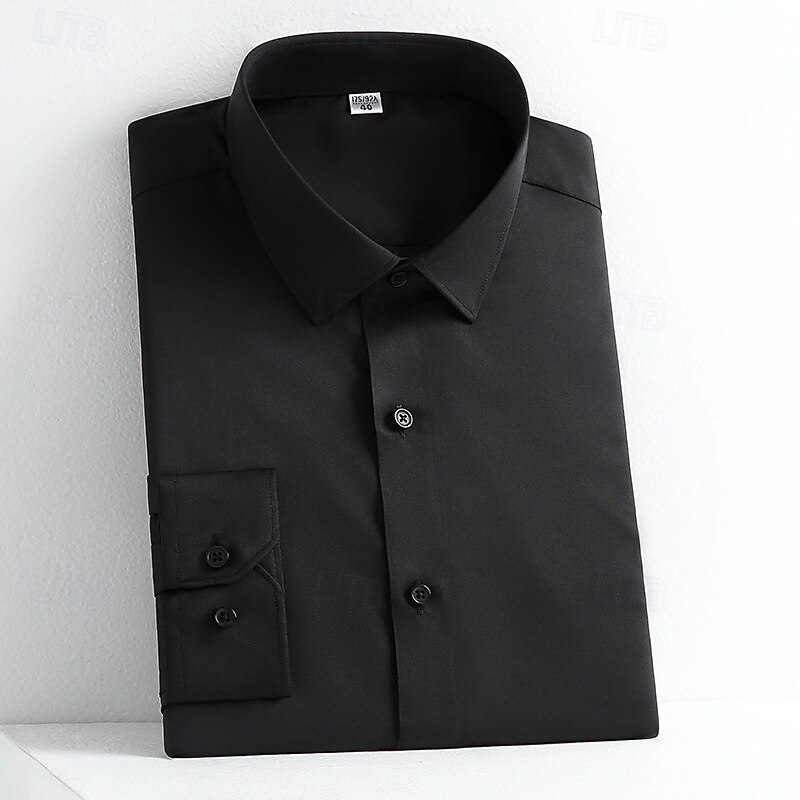 More information about Men's Shirt Dress Shirt Button Up Shirt Solid Color Wedding Party Black White Yellow Light Green Long Sleeve Lapel Spring Fall Clothing Apparel Pocket