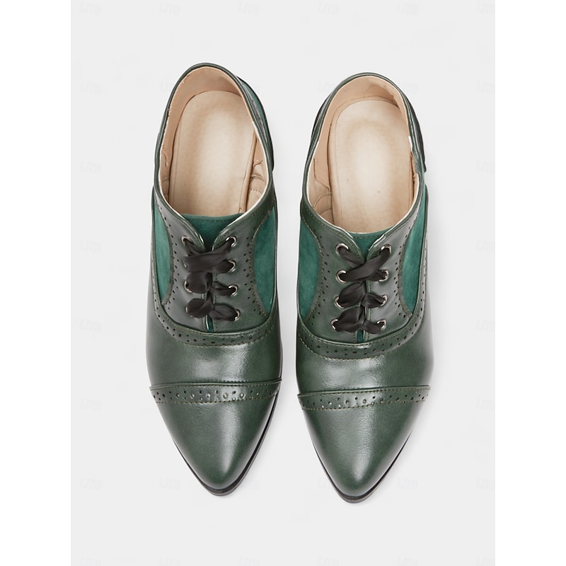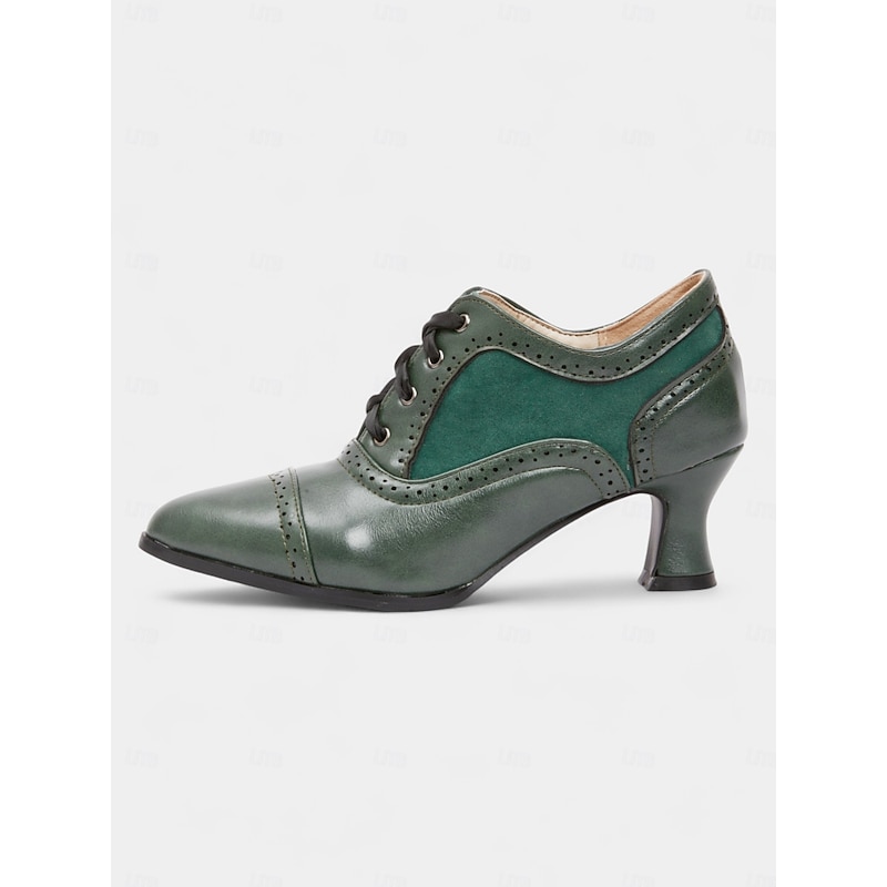 Women's Edwardian Era Green Oxford Heels – 1900s-1910s Vintage Lace-Up Victorian Mid-Heel Dress Shoes with Brogue Detailing, Perfect for Tea Parties, Cosplay and Historical Events 5