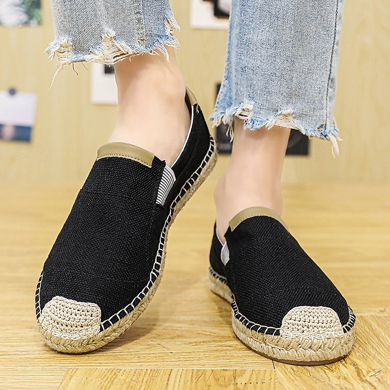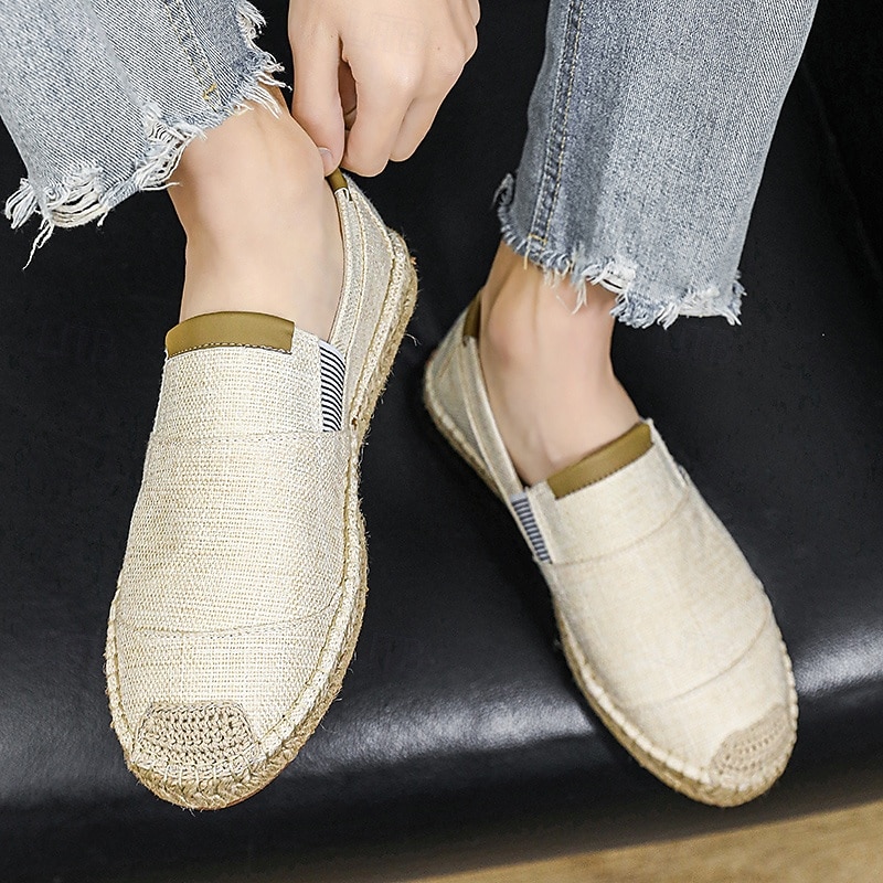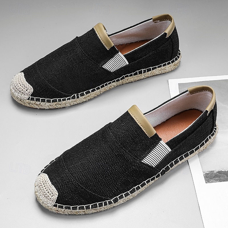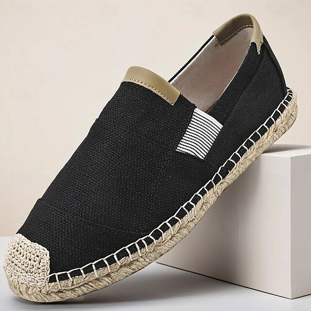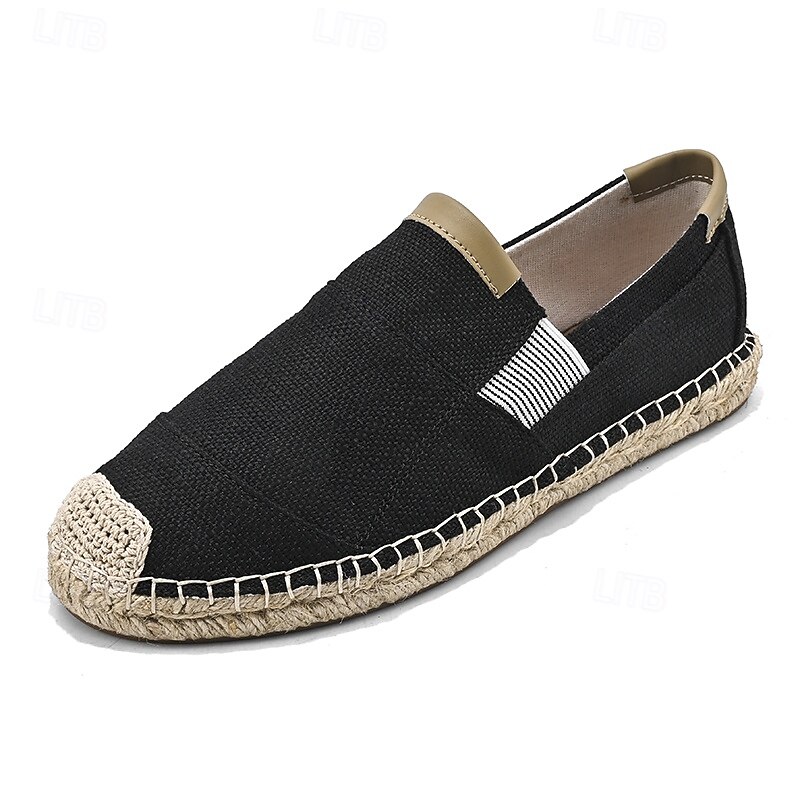 HOT ! Men's Black Espadrille Slip-On Shoes with Jute Sole - Casual, Comfortable Summer Footwear for Everyday Wear