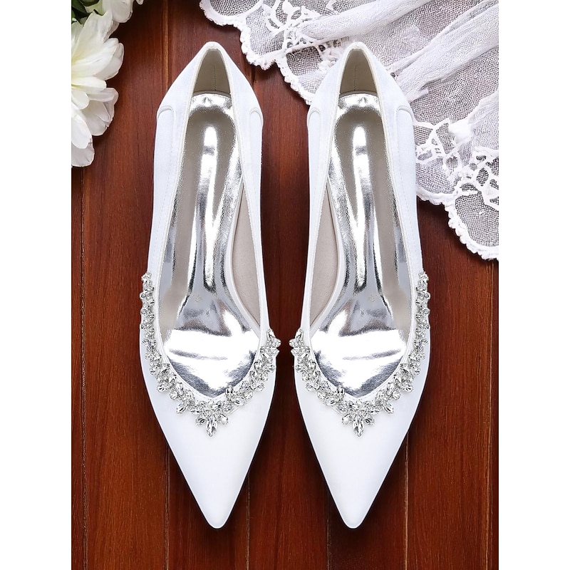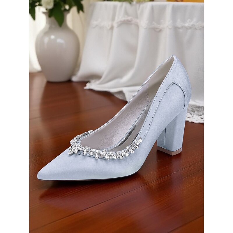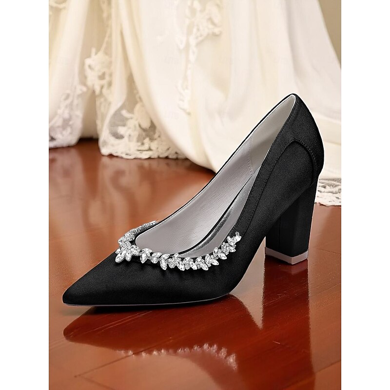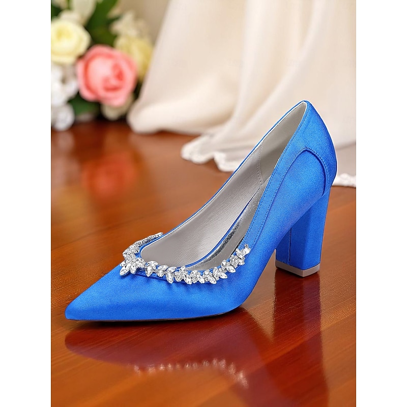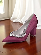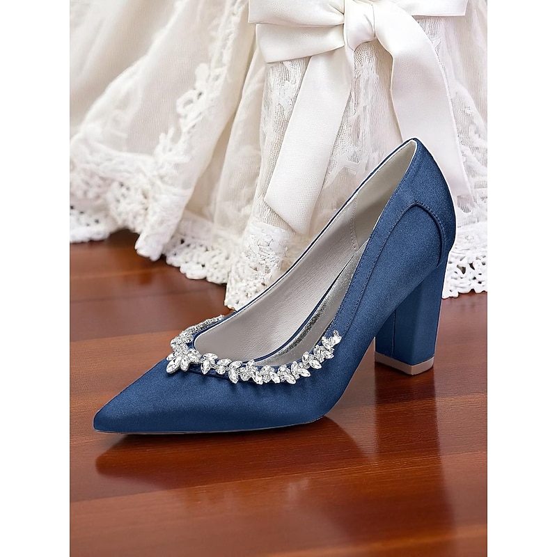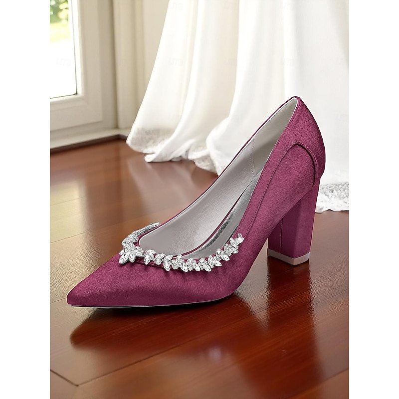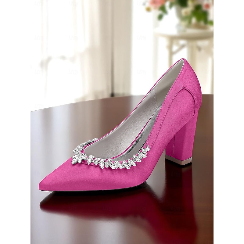 Why Choose Women's Pink Satin Block Heel Wedding Pumps, Pointed Toe Rhinestone Embellished Bridal Shoes for Formal Ceremonies and Elegant Events?