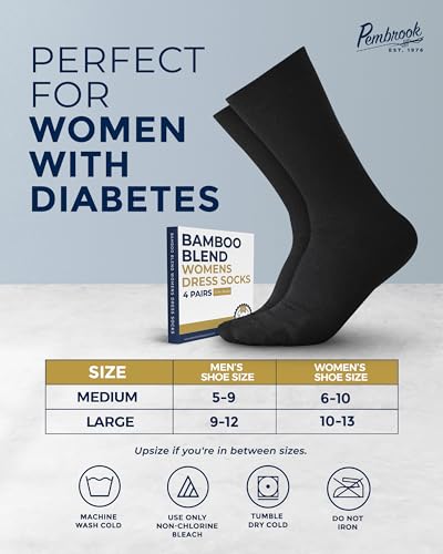 HOT ! Pembrook Bamboo Viscose Dress Socks Women - 4 Pairs Crew Trouser Socks Women | Moisture Wicking Thin Socks Women