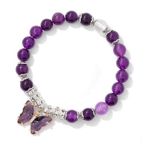 • Amethyst Bracelet with Butterfly Charm: Fashion and delicate amethyst beaded bracelet, lovely butterfly charm bracelet. Can be matched according to your mood,they are cute and charming, Suitable for many occasions with distinct outfits and makeup.