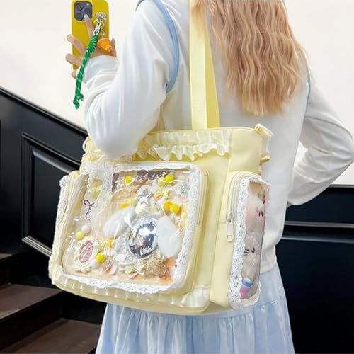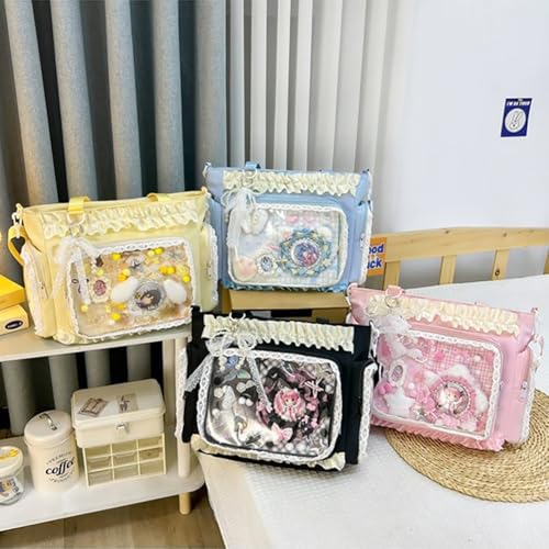 HOT ! Kawaii Ita Bag with Clear Display Window, Soft Lace Ruffle Trim Shoulder Purse,Multi-Pocket Crossbody Tote for Anime Cosplay