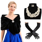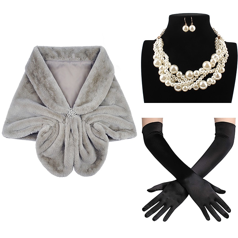 $47.99 - Set with Faux Fur Shawl Wraps Rhinestone Brooch Faux Pearl Necklace Earrings Long Opera Gloves Women's 1920s Bride Wedding Winter Bridal Faux Fox Fur Stoles and Scarfs for Women and Bridesmaids 2025. Shop for cheap Shawls & Wraps online? Buy at lightinthebox.com on sale today!