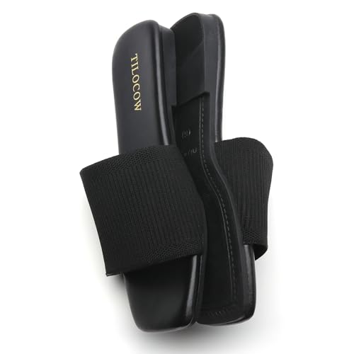 Tilocow Knitted Flat Sandals For women Square Open Toe Slide Sandals Casual Summer Shoes 6