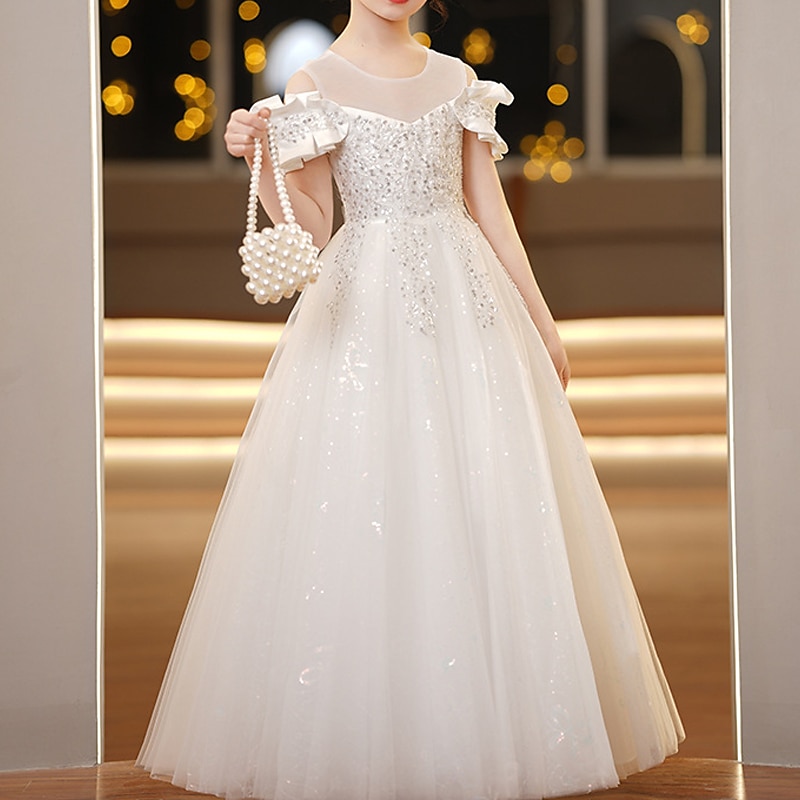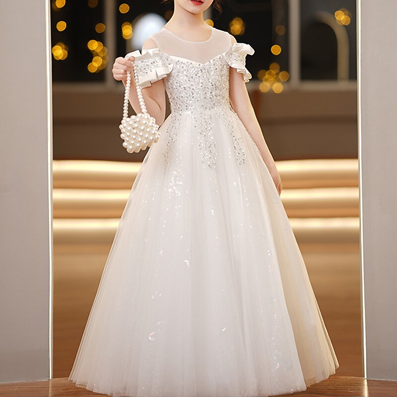More information about Kids Girls' Flower Girl Dress Party Dress Solid Color Short Sleeve Wedding Party Special Occasion Princess Polyester Party Dress Flower Girl's Dress Summer Spring 3-12 Years White Champagne