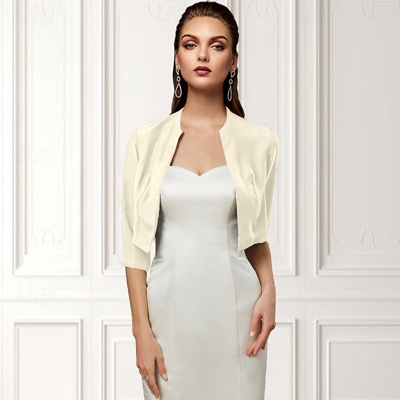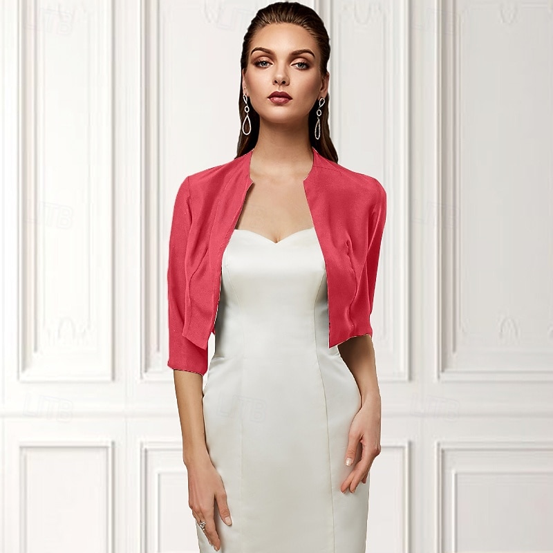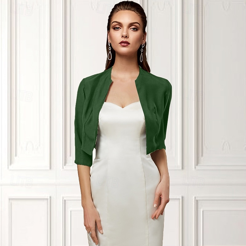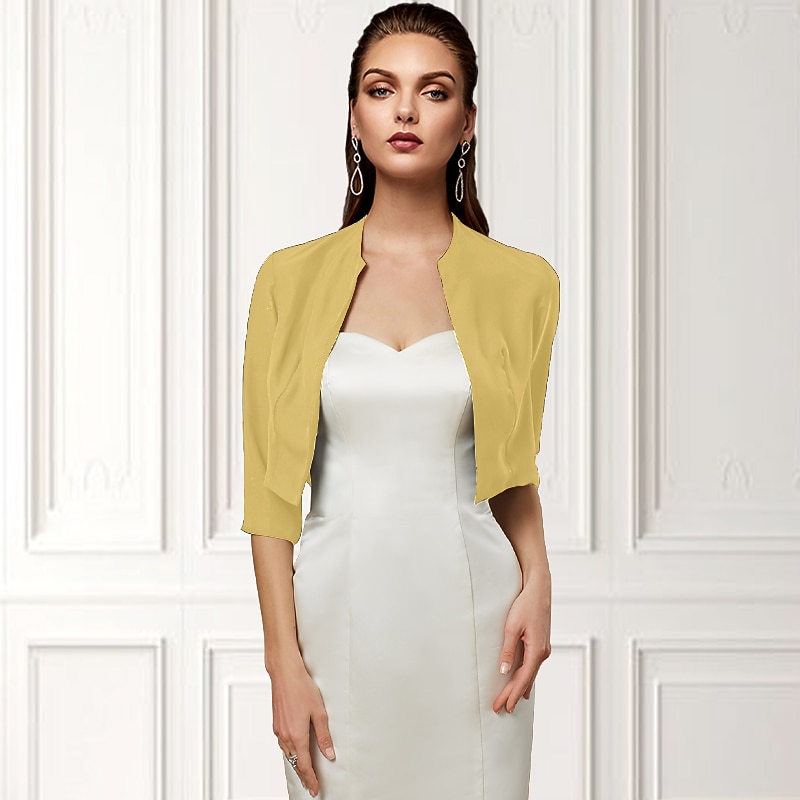 More information about Women's Wrap Bolero Shrug Mother's Wraps Basic Coats / Jackets Elegant 3/4 Length Sleeve Chiffon Wedding Guest Wraps With Pure Color For Party Evening Spring & Summer dress to impress