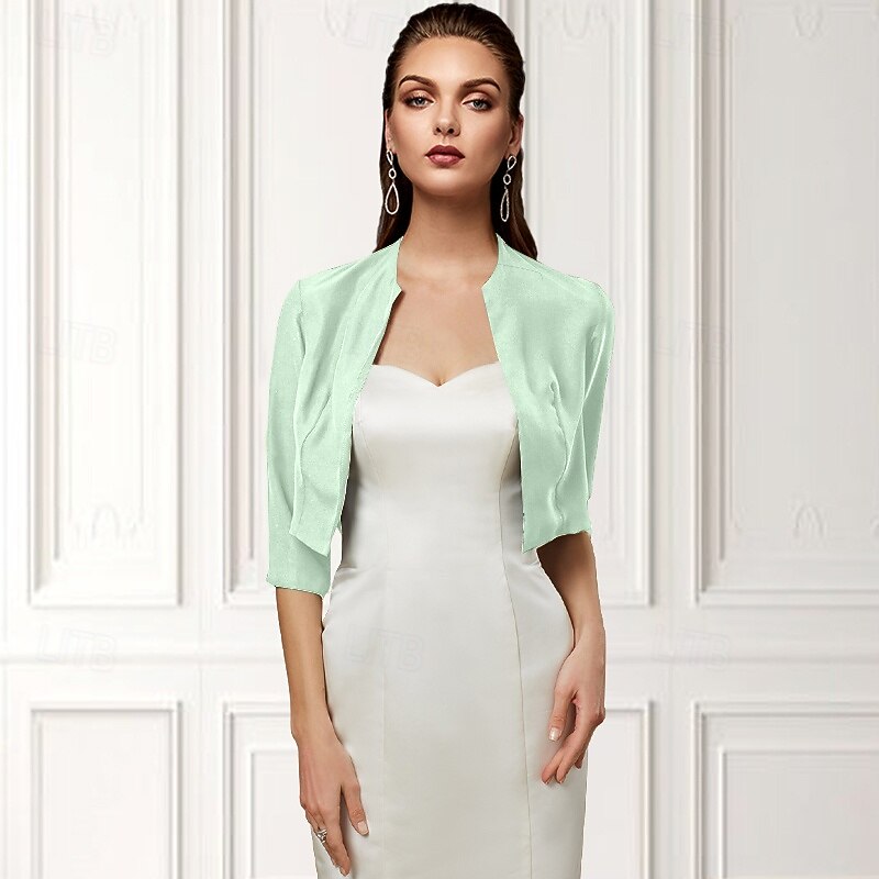 Women's Wrap Bolero Shrug Mother's Wraps Basic Coats / Jackets Elegant 3/4 Length Sleeve Chiffon Wedding Guest Wraps With Pure Color For Party Evening Spring & Summer dress to impress 17