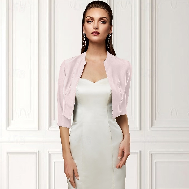 Women's Wrap Bolero Shrug Mother's Wraps Basic Coats / Jackets Elegant 3/4 Length Sleeve Chiffon Wedding Guest Wraps With Pure Color For Party Evening Spring & Summer dress to impress 14